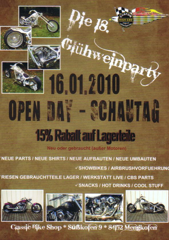 Auch die Glühweinparty zu der das CBS Team am 16.01.2010 lud war wieder ein voller Erfolg. Mehrere hundert Gäste waren gutgelaunt anzutreffen und konnten die neuesten Aufbauten bestaunen.